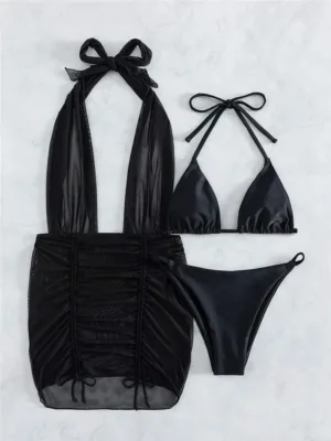 Be the first to review “3 Piece Halter Triangle Bikini 2025Women With Cover Up Drawstring Swimsuit Female Swimwear Beach Wear Bathing Swimming Suit Lady”