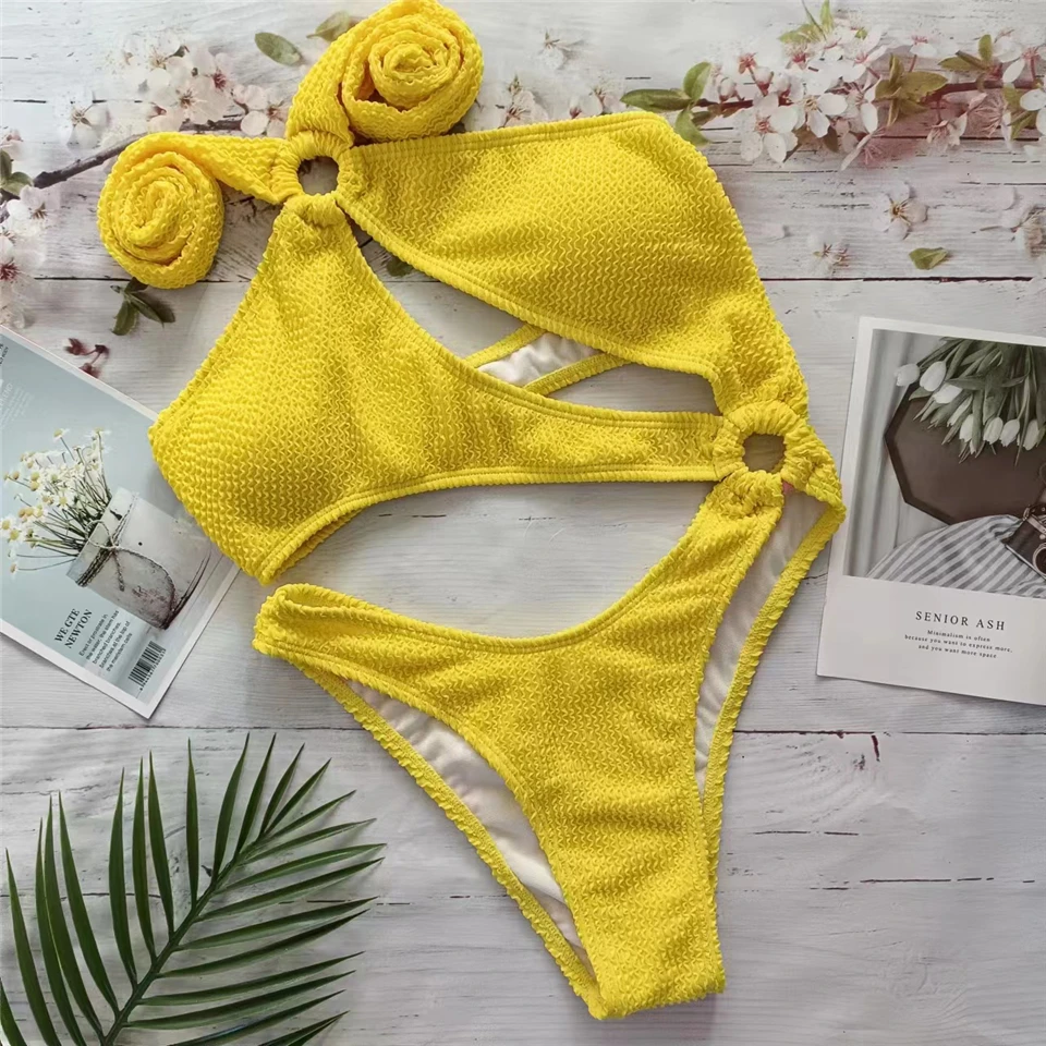 One Piece Ring Link Bikini Solid Swimwear Women 2025 Sexy Cut Out Swimsuit Summer Beach Wear Female Bathing Swimming Bodysuit