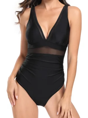 Polychrome One Piece Mesh Swimwear 2025 Women Deep V-Neck Bodysuit Summer Beachwear Female Bathers Bathing Swimming Swimsuit 2XL